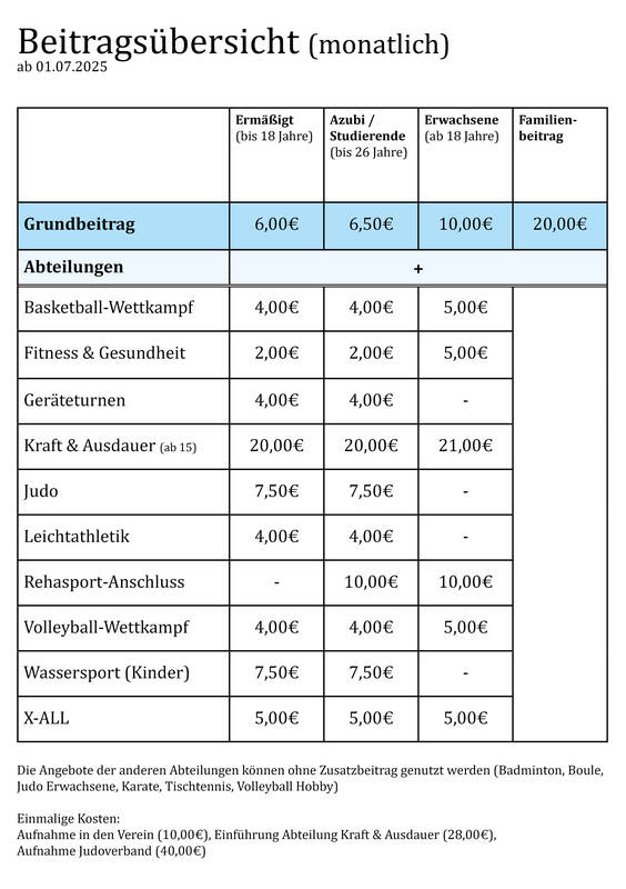 Klingt kompliziert? Ist es aber gar nicht. Alle Beiträge, die anfallen können, findest Du in unserer Beitragsübersicht und auf den jeweiligen Angebots-Seiten. Wenn du dennoch Fragen hast, melde dich gerne bei uns in der Geschäftsstelle.